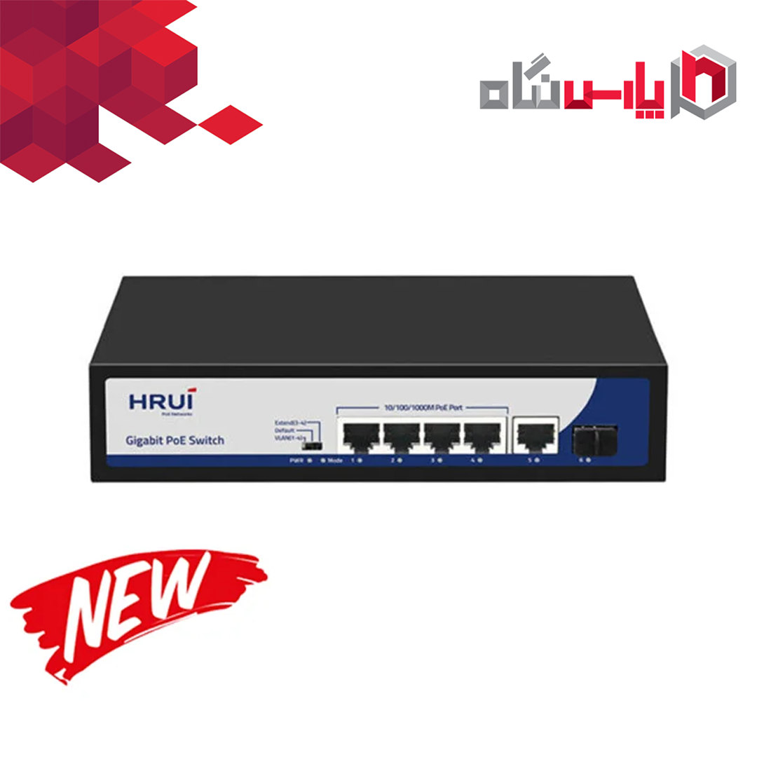 سوئیچ PoE دارای 4 پورت PoE گیگ و 1 پورت Uplink گیگ و 1 پورت Uplink SFP گیگ اچ ار یو ای HRUI HR900-AFG-411NS-120ناموجود